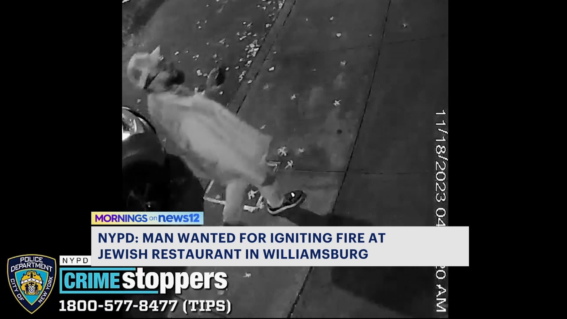 NYPD: Suspect wanted for igniting fire at Jewish restaurant in Williamsburg