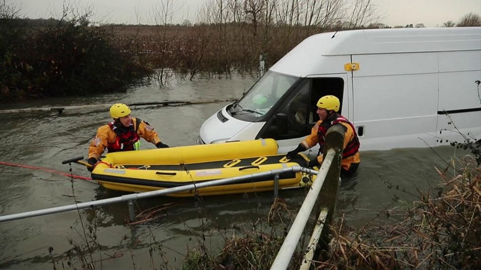 Firefighters rescue car driver from Little Baddow flood water - BBC News