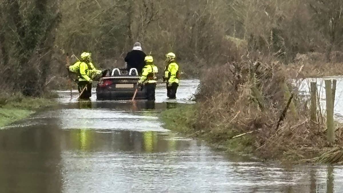 Warning to motorists about driving in floodwater as fire crews rescue ...