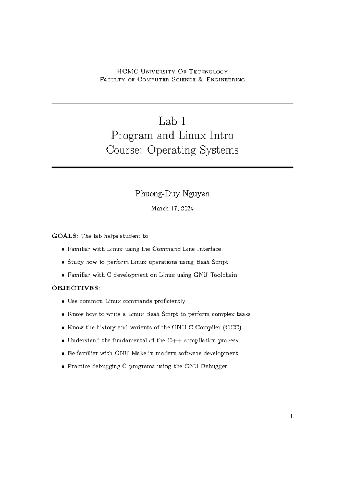 Lab 1: Intro to Linux & Programming (CS101) - Goals & Objectives - Studocu