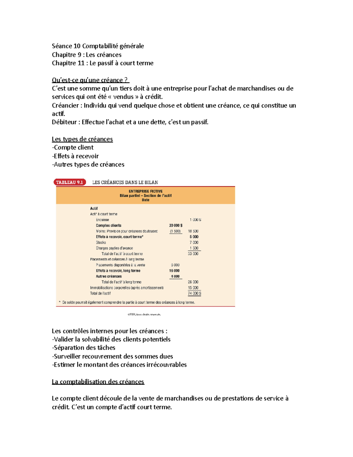 Chap 9-11 créances et passif court terme - Séance 10 Comptabilité ...