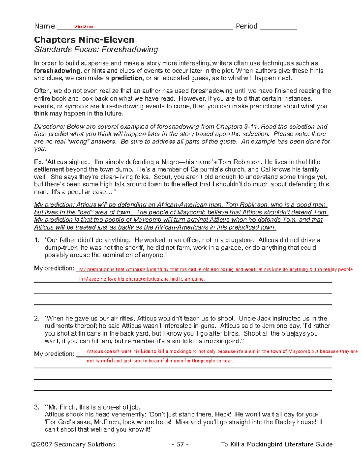 Mira Mann - TKAM chap 9 and 11 foreshadow - Name ...