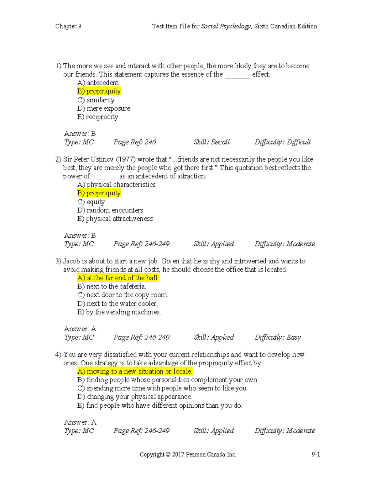 Psych 2720 Chap 9 Test Bank - 1) The more we see and interact with ...
