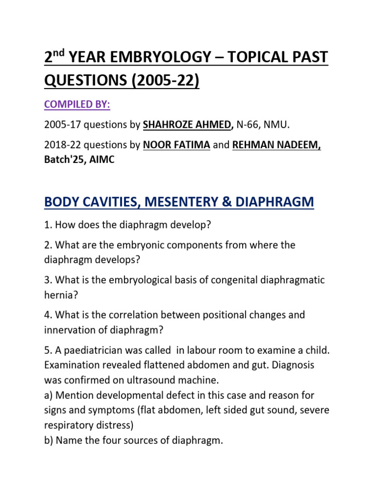 EMBRYOLOGY 2nd Year Topical Past Papers 2005-22 | PDF | Heart | Aorta