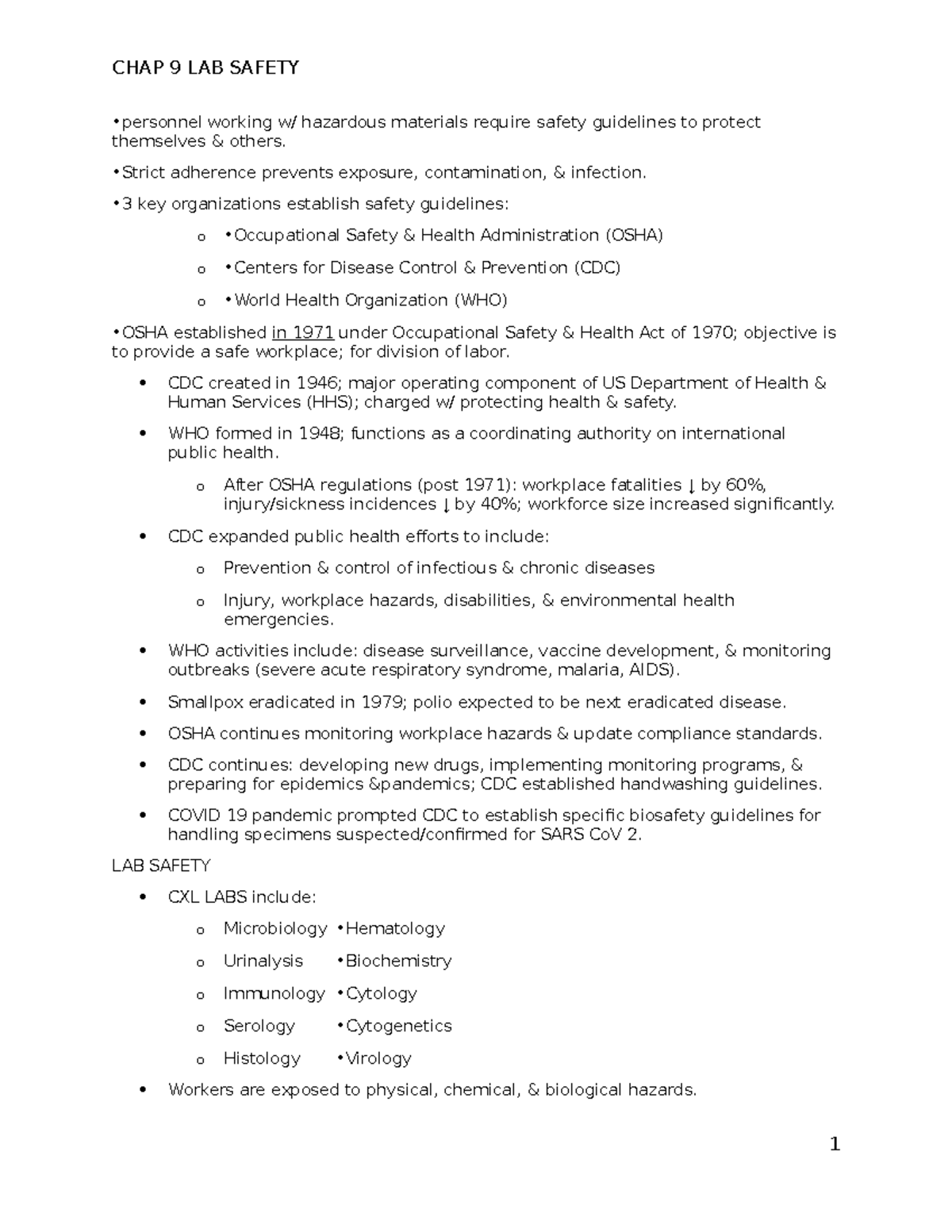 MICO CHAP 9 - LAB SAFETY GUIDELINES AND PROTOCOLS - Studocu