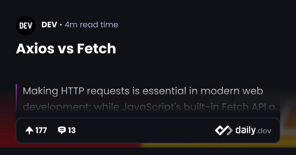 Axios vs Fetch | daily.dev