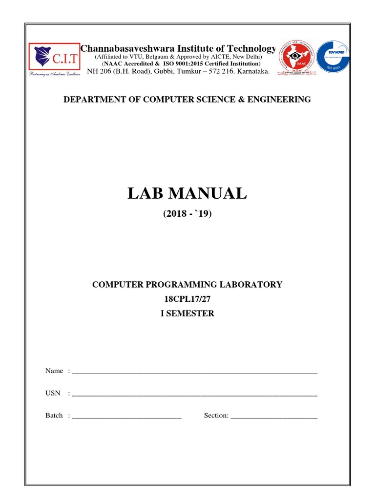 Lab Manual: Channabasaveshwara Institute of Technology | PDF | Random ...