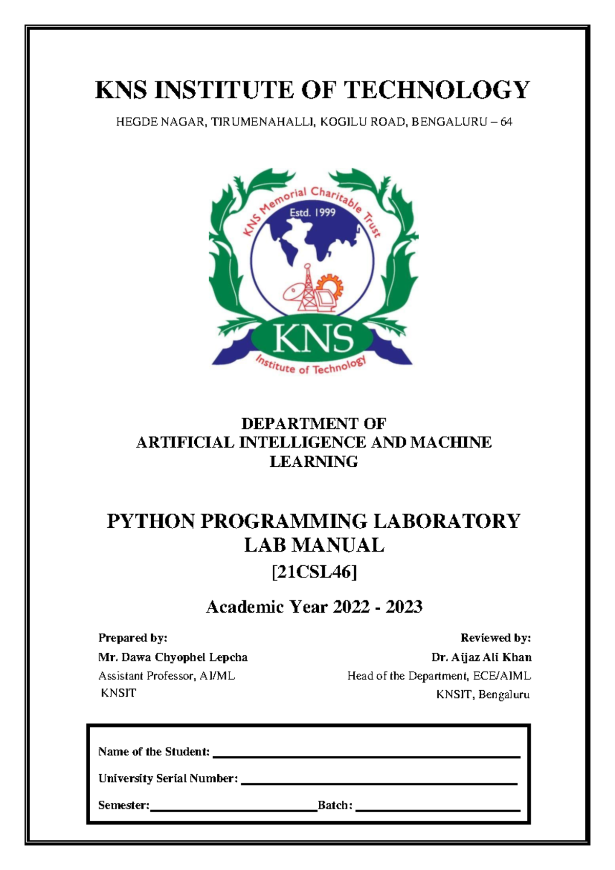 Python Programming Lab Manual 21CSL46 | PDF | Engineering | Computer ...