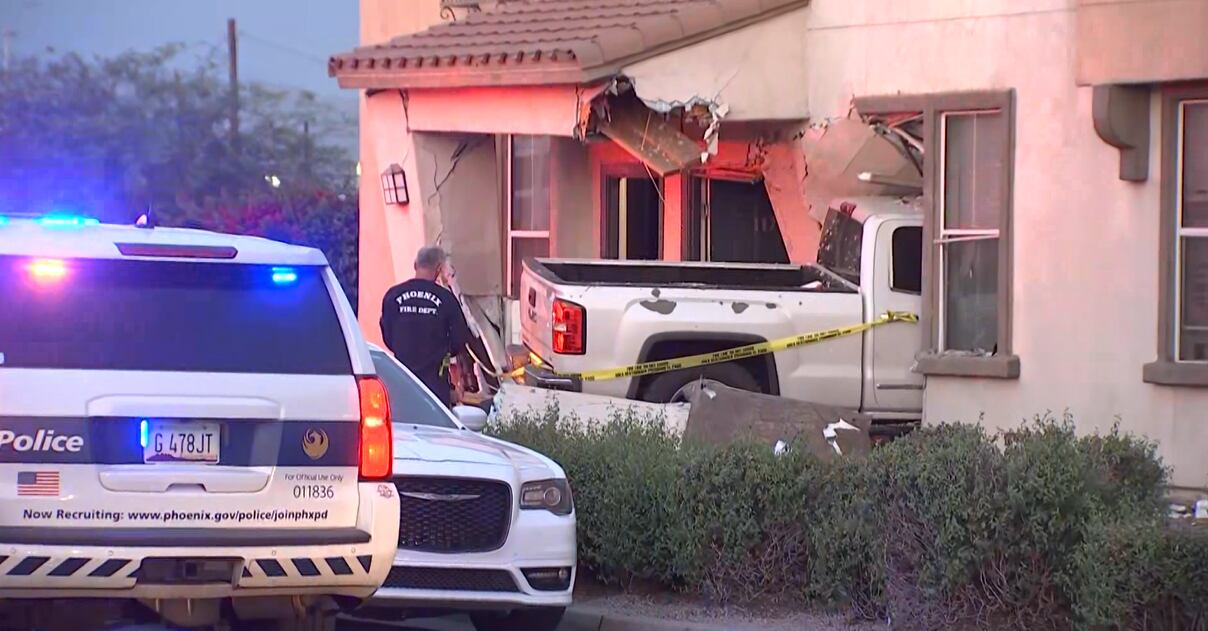 Pickup truck crashes into central Phoenix residence; driver hospitalized