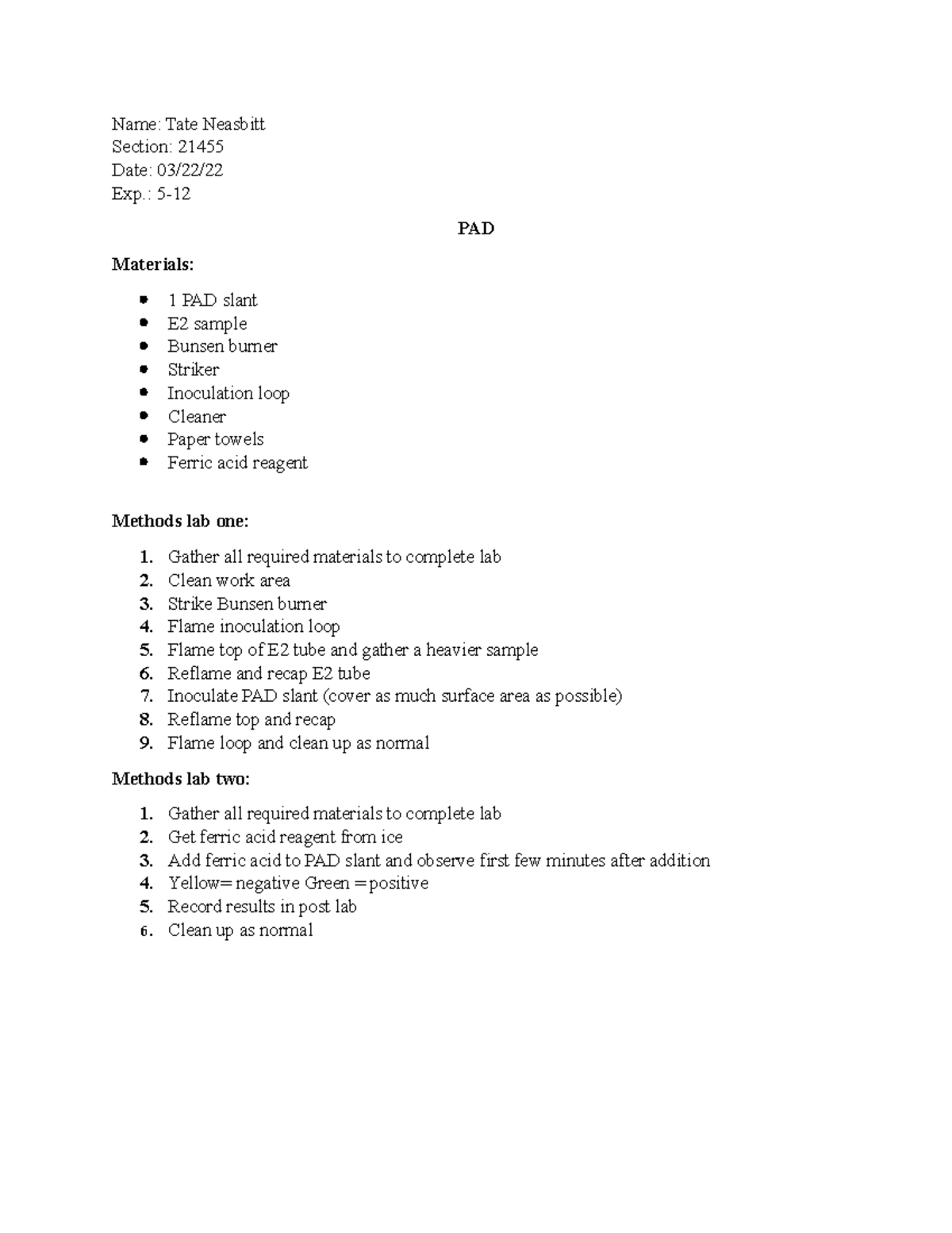 Pre lab 5-12 - pre lab 5-12 for assignment 5-12 - Name: Tate Neasbitt ...
