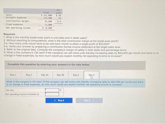 Solved EXERCISE 5-18 Break-Even and Target Profit Analysis; | Chegg.com