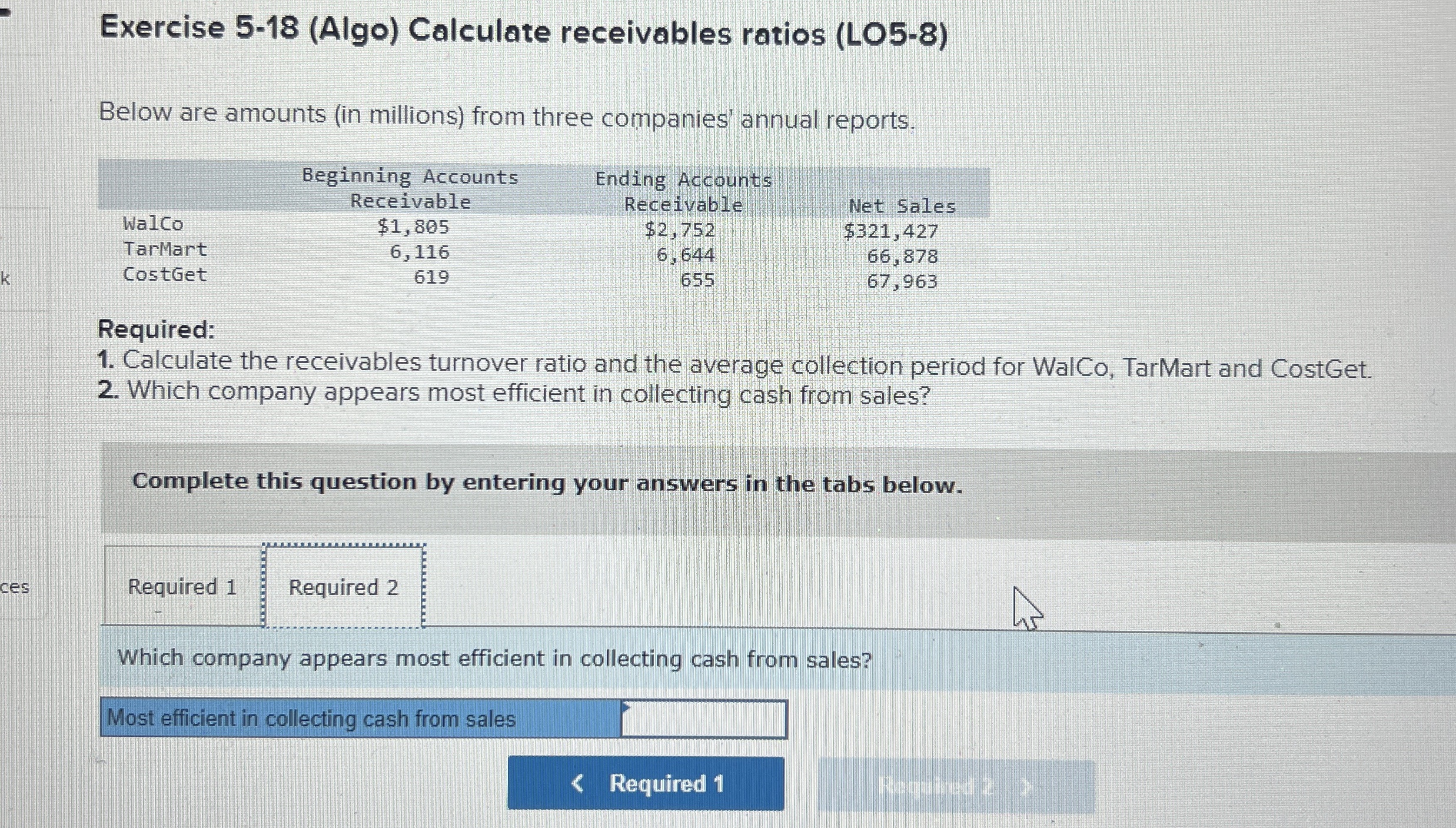 Solved Exercise 5-18 (Algo) Calculate receivables ratios | Chegg.com