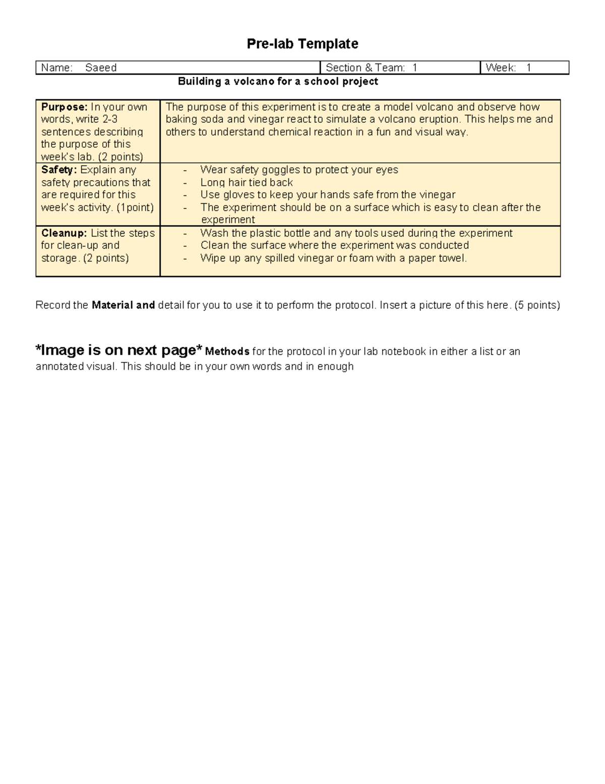 Saeed, Pre-lab #5: Building a volcano experiment overview and safety ...