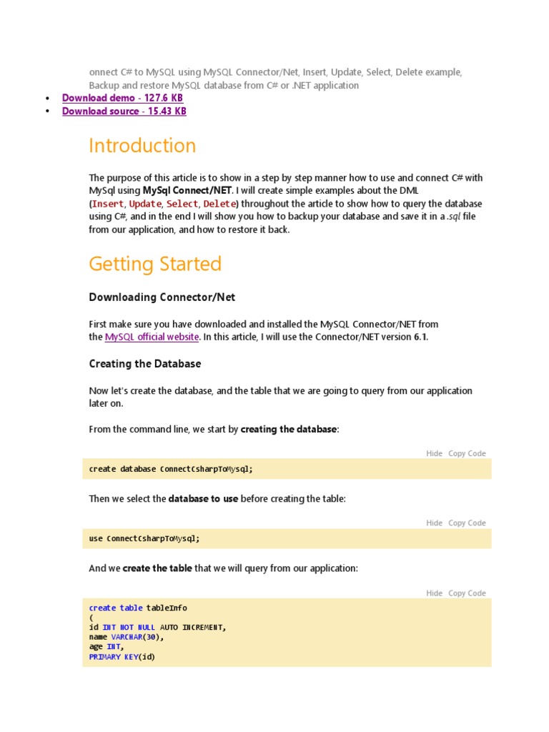 C# MySQL Connector Guide: CRUD & Backup | PDF | My Sql | Databases