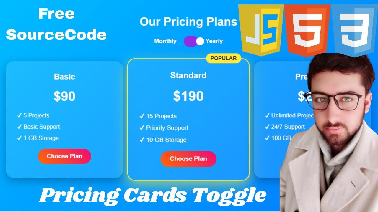 Responsive Pricing Cards with Toggle | HTML CSS JavaScript Tutorial ...