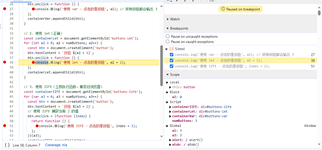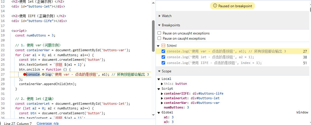 8.11JavaScript 作用域(以let、var 和立即执行函数(IIFE)分别实现点击按钮时输出“点击的是第几个按钮”的分析)-CSDN博客