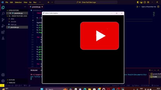 Based on this image's title: βPython Turtle Tutorial: Drawing the YouTube Logo Step-by-Step - YouTubeβ
