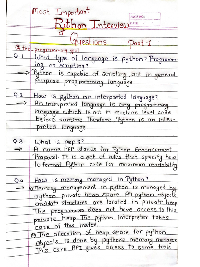 Python Interview Questions Part 1 Handwritten Notes | PDF