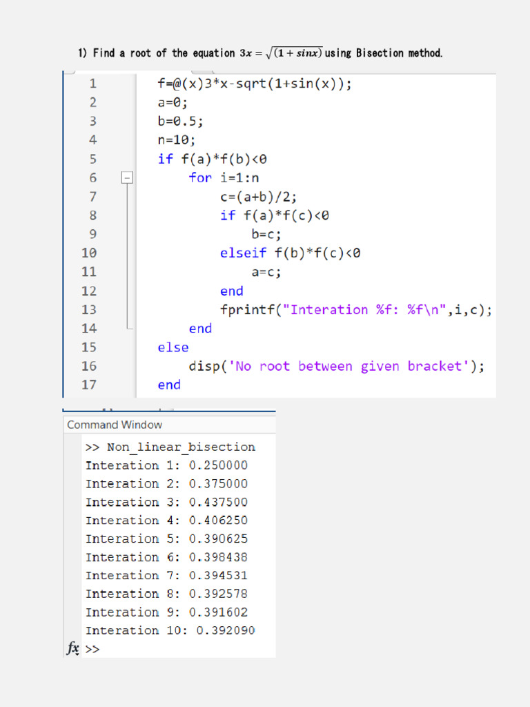 1) Find A Root of The Equation Using Bisection Method | PDF