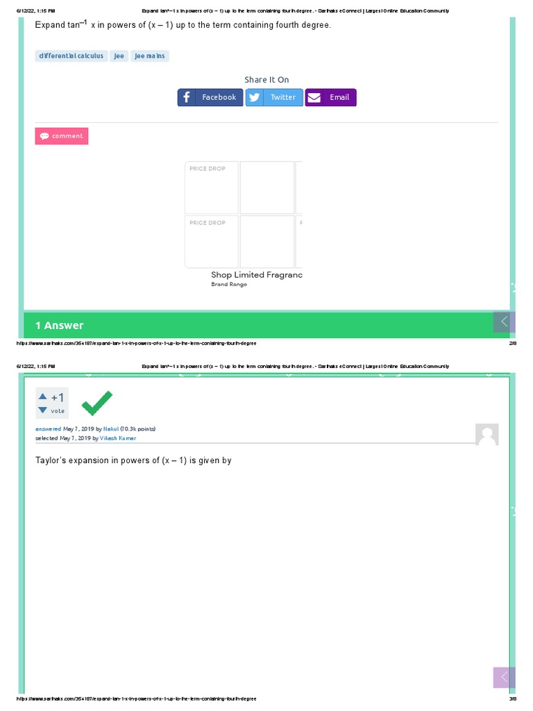 Expand Tan - 1 X in Powers of (X - 1) Up To The Term Containing Fourth ...