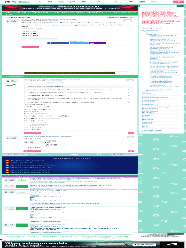 The Solubility of AgCN in A Buffer Solution of PH 3 Is X. The Value of ...