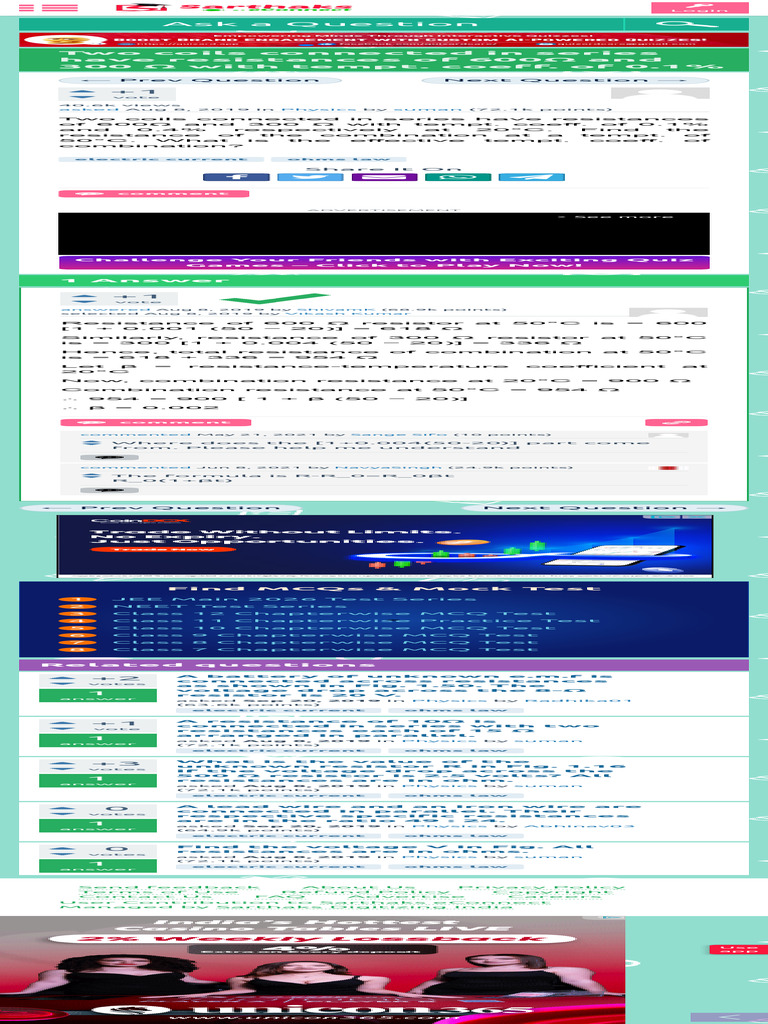 Two Coils Connected in Series Have Resistances of 600Ω and 300 Ω With ...