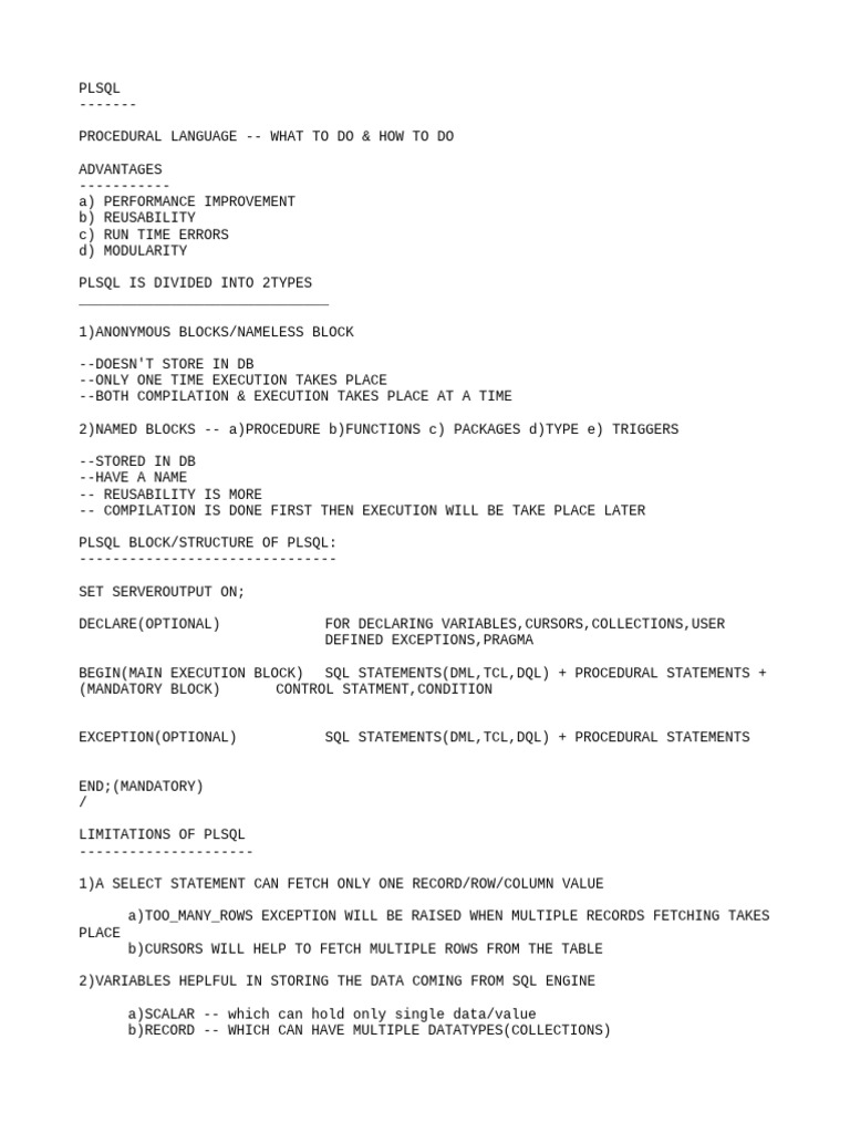 PLSQL Intro Notes1 | PDF