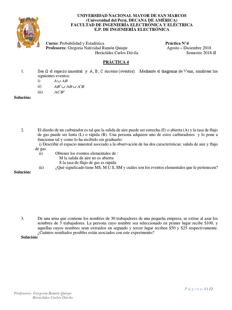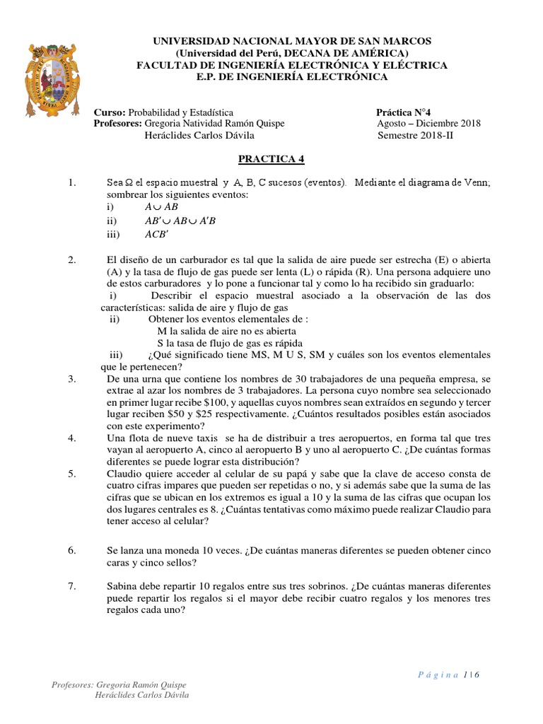 2018-Ii Practica 4 para Los Estudiantes | PDF | Probabilidad | Contraseña