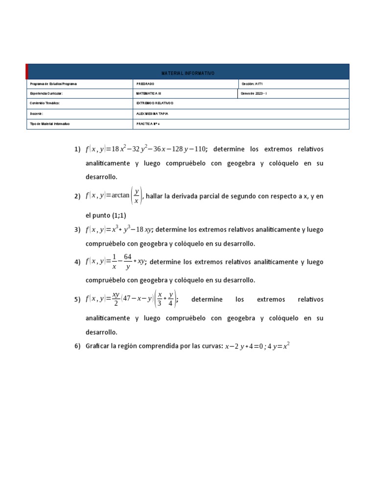 Practica 4 Grupo B | PDF | Ecuaciones | Función (Matemáticas)