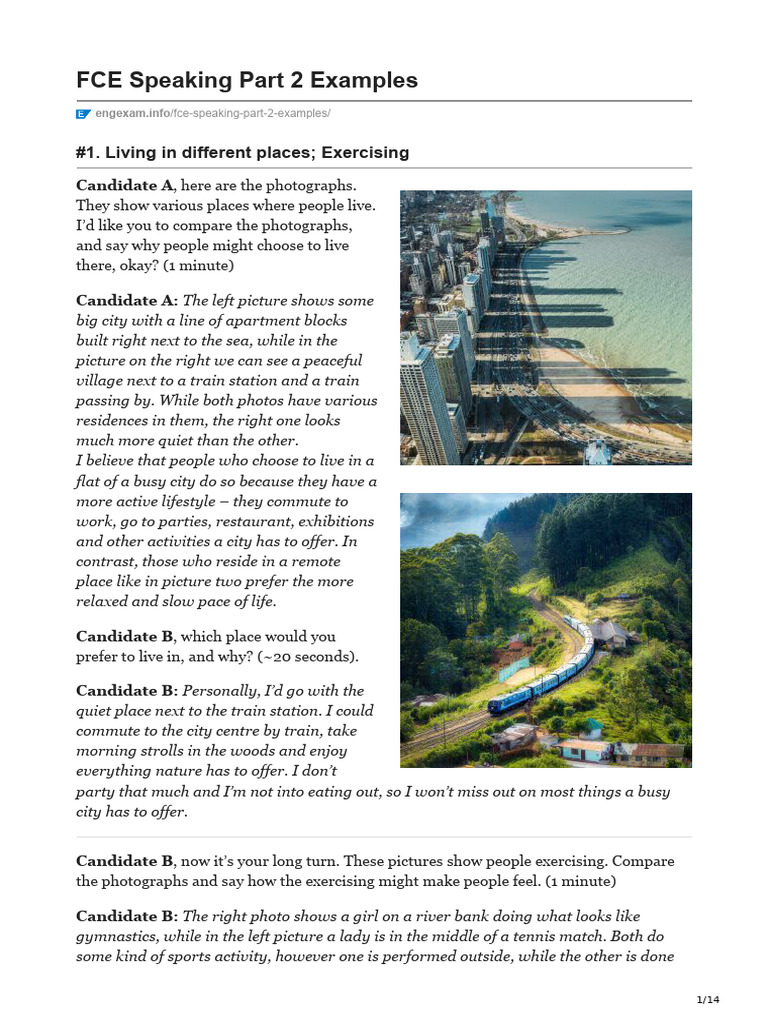 FCE Speaking Part 2 Examples - EngExam - Info | PDF | International ...