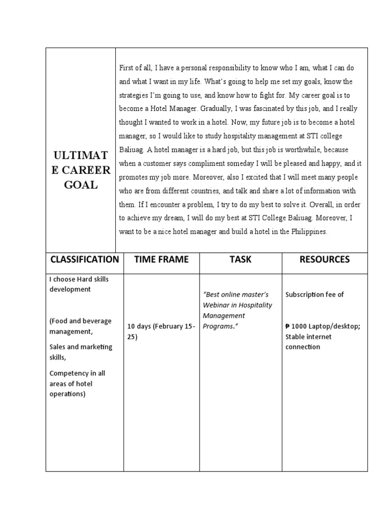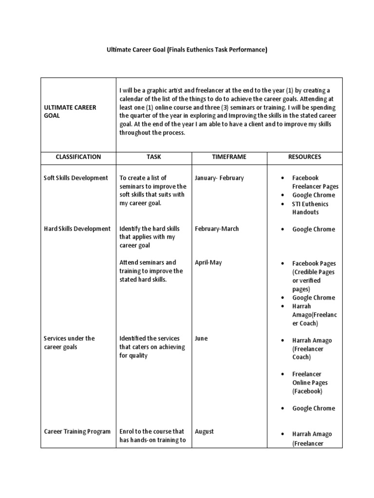 Ultimate Career Goal (Finals Euthenics Task Performance) | PDF ...