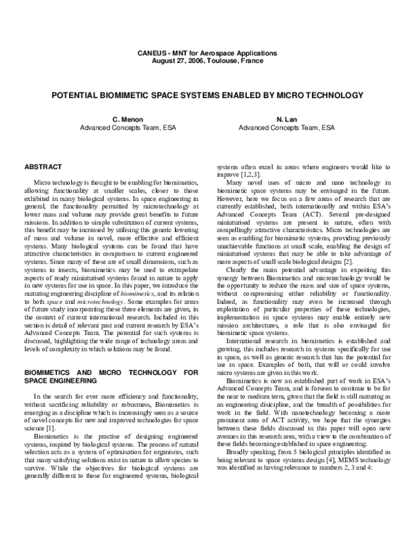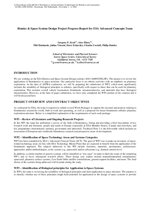 (PDF) Bionics & Space System Design Project Progress Report for ESA ...