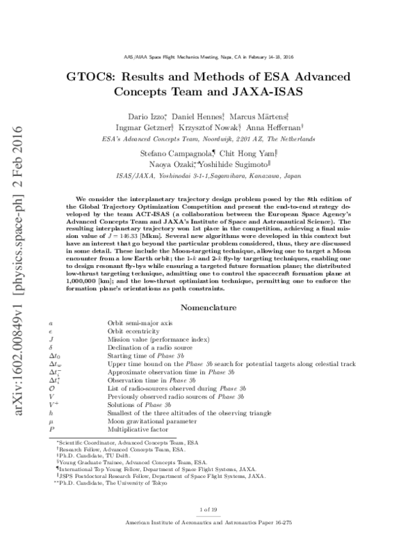 (PDF) GTOC8: Results and Methods of ESA Advanced Concepts Team and JAXA ...