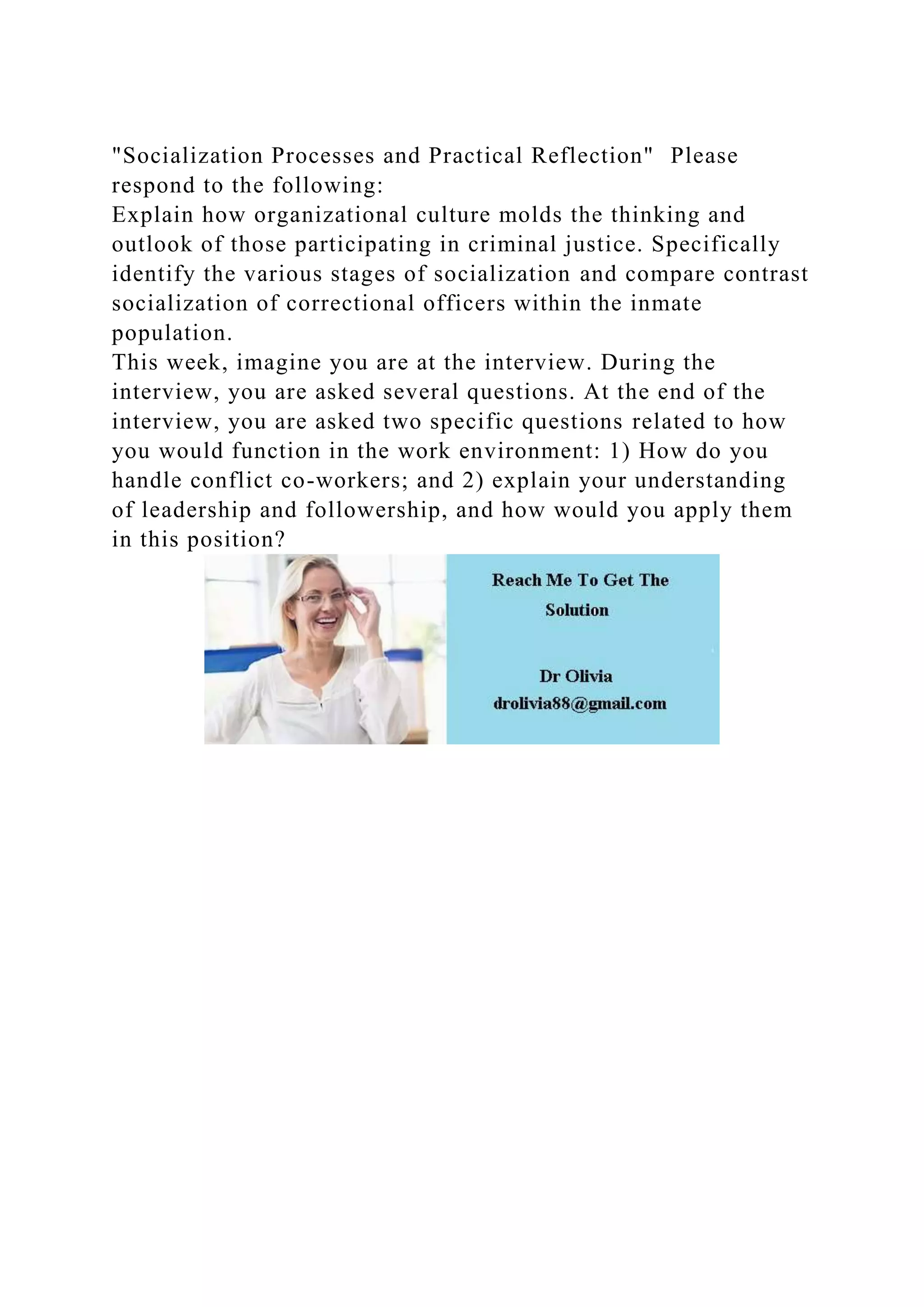 Socialization Processes and Practical Reflection Please respond t.docx