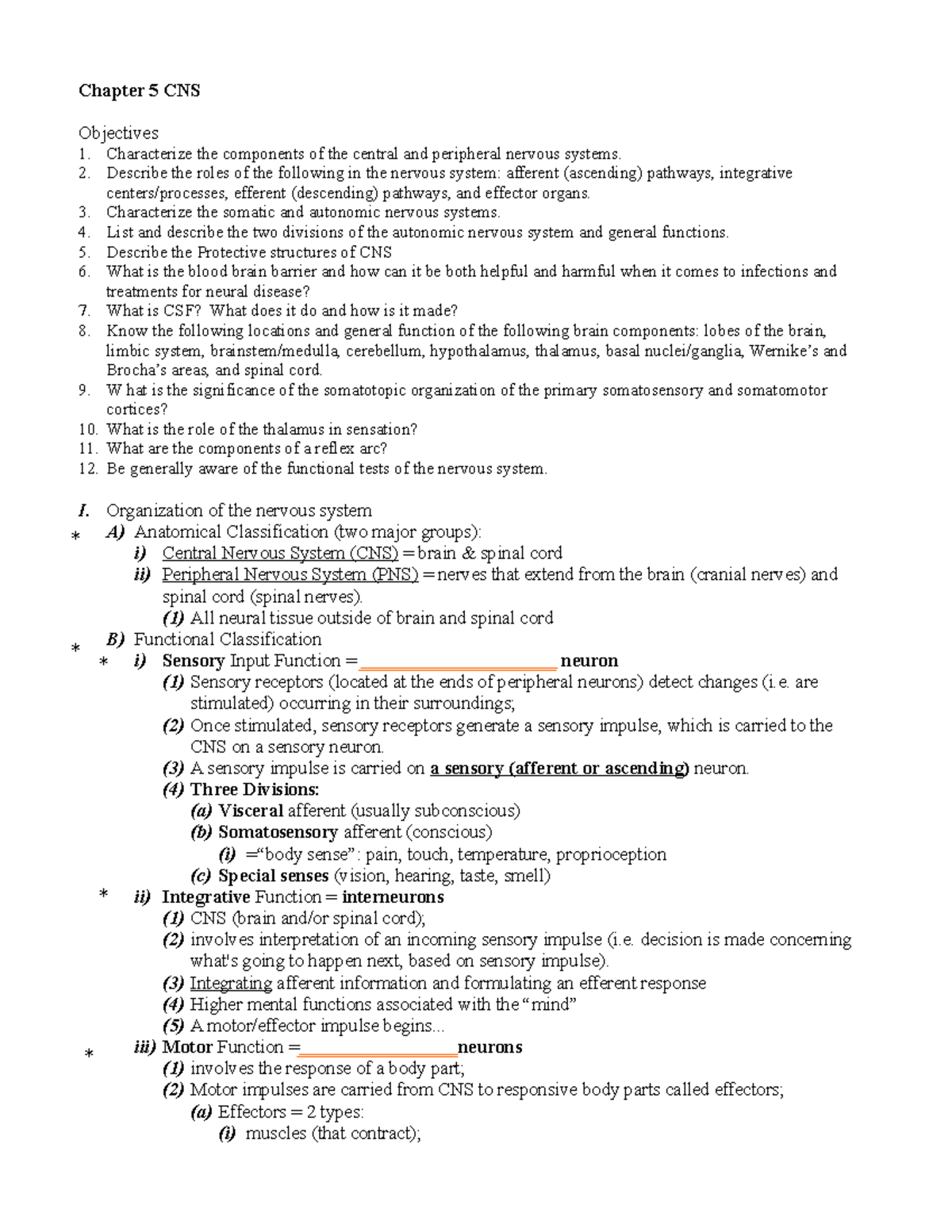 F Chap 5 CNS - bio 290 - Chapter 5 CNS Objectives Characterize the ...