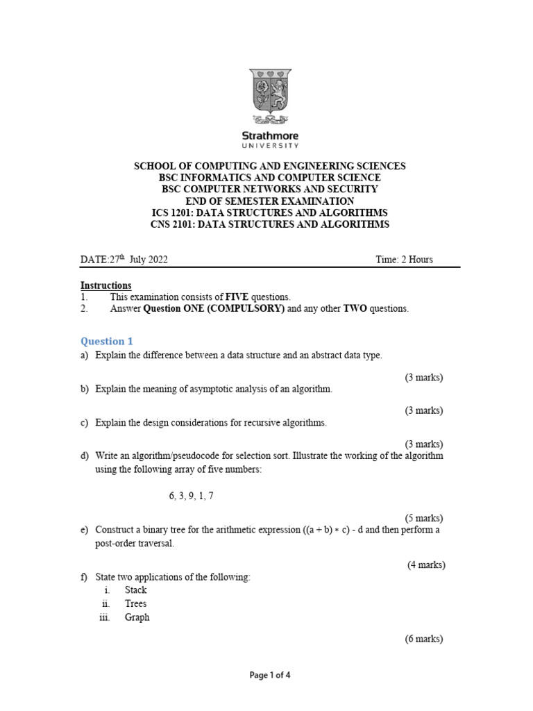CNS 2101 - Data Structures and Algorithms - July 2023 | PDF | Computer ...