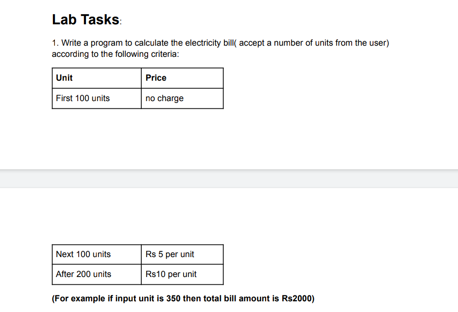 calculate electricity bill according to unit C python java | logical ...