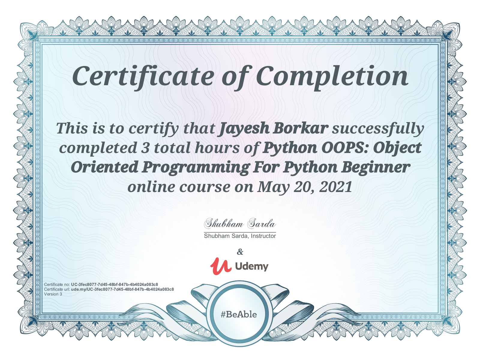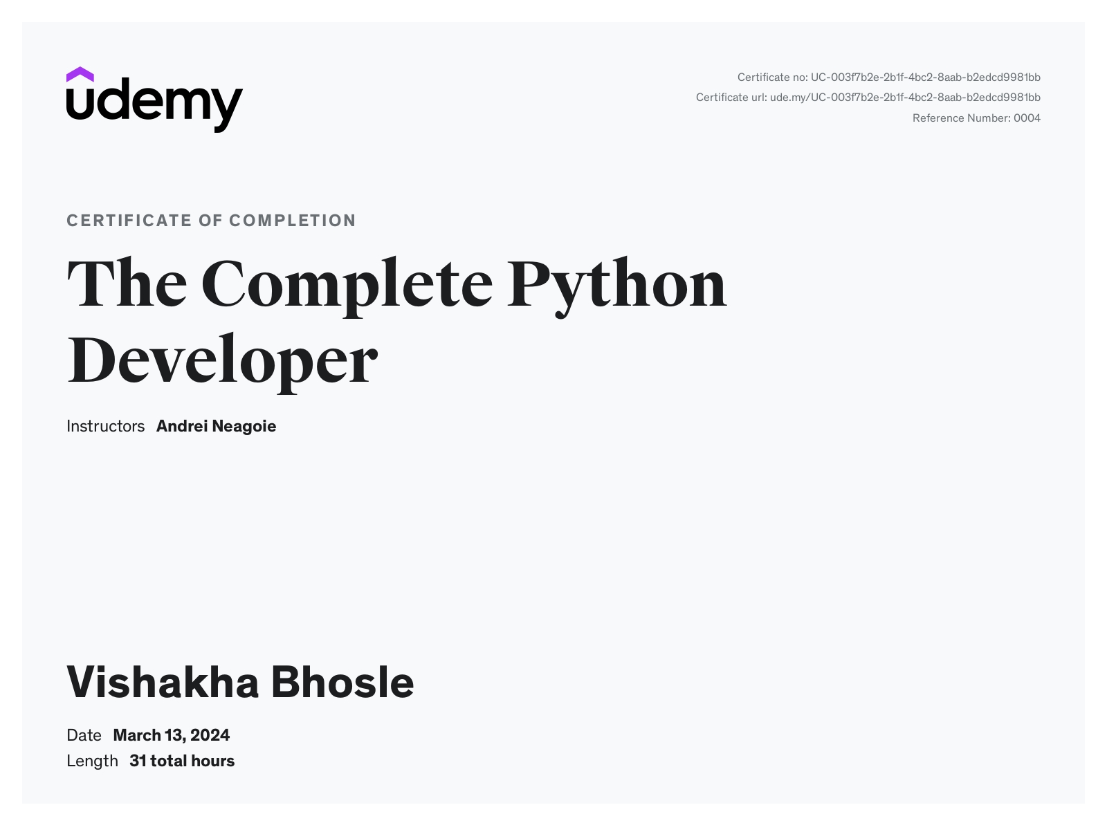 🎉 Excited to share that I’ve successfully completed the Complete Python ...