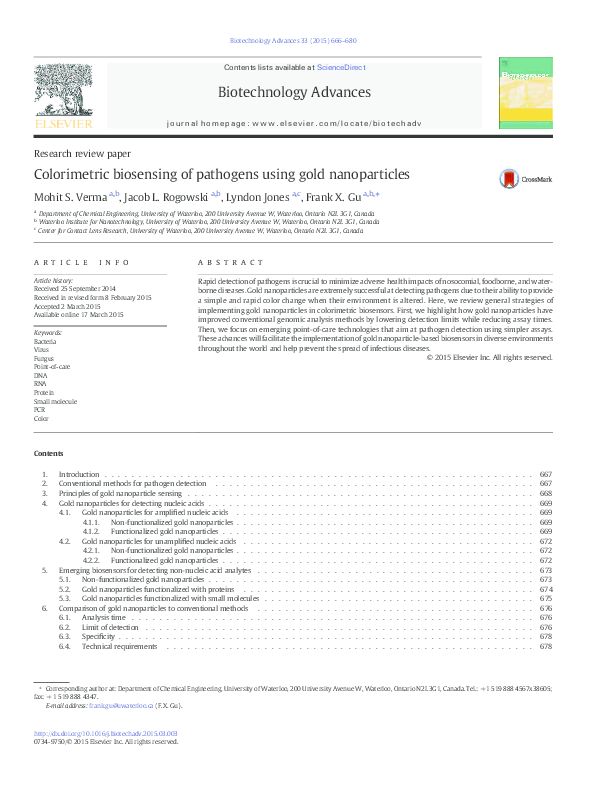 (PDF) Colorimetric biosensing of pathogens using gold nanoparticles