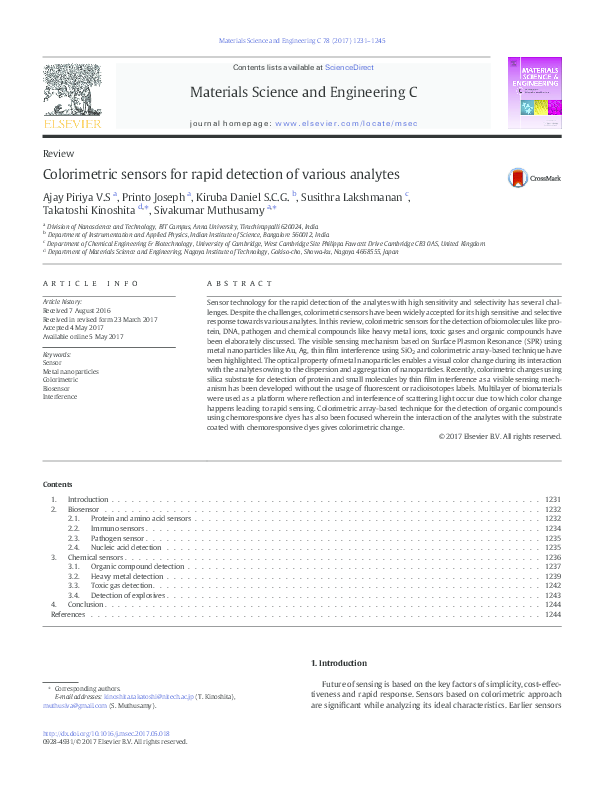 (PDF) Colorimetric sensors for rapid detection of various analytes