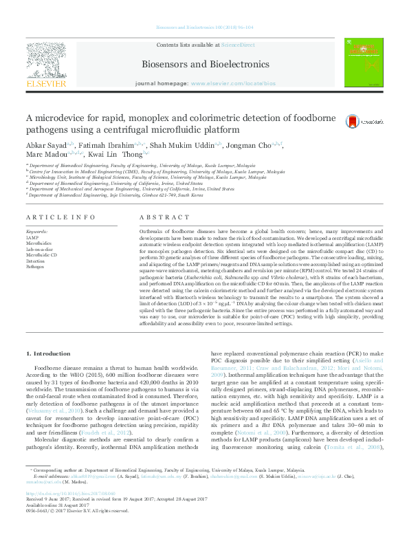 (PDF) LAMP-Based Point-of-Care Biosensors for Rapid Pathogen Detection