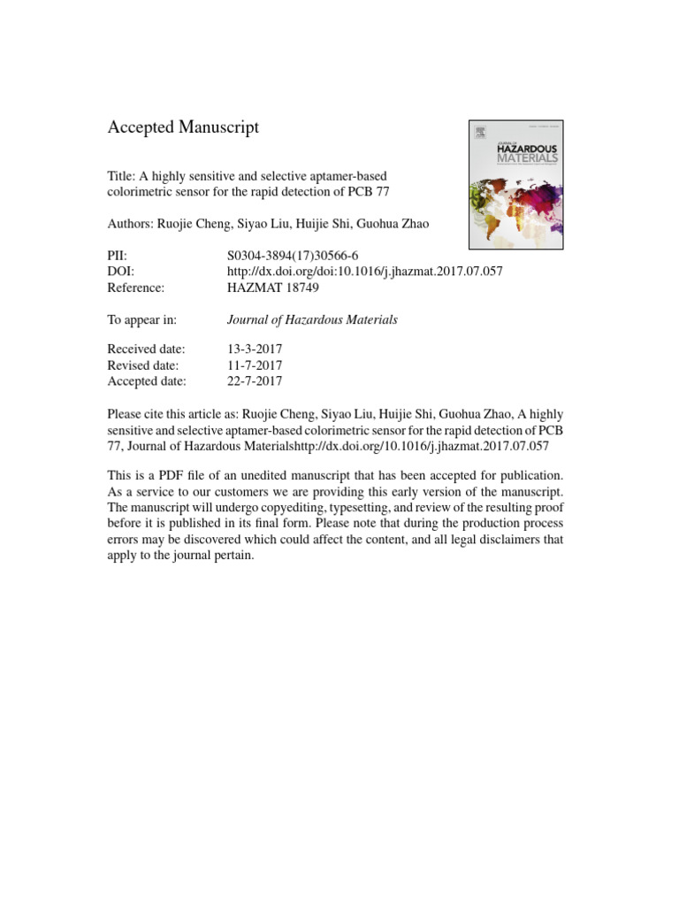 (PDF) Development of a Rapid and Sensitive Probe for Colorimetric ...