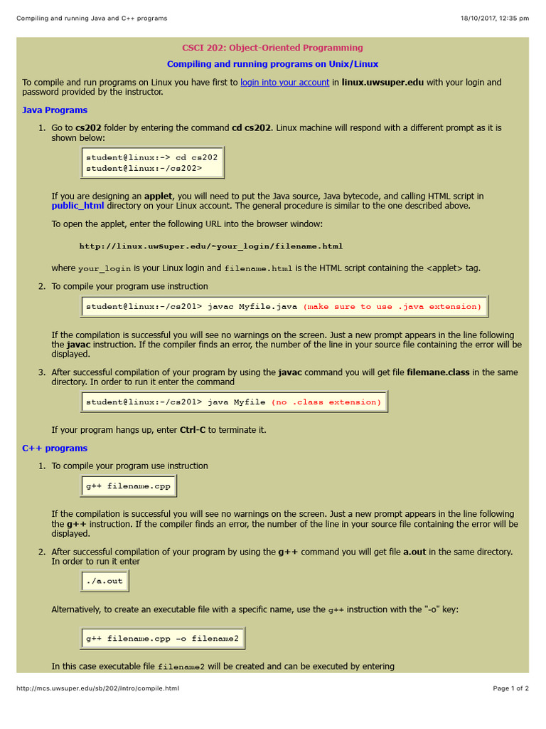Compiling and Running Java and C++ Programs | PDF