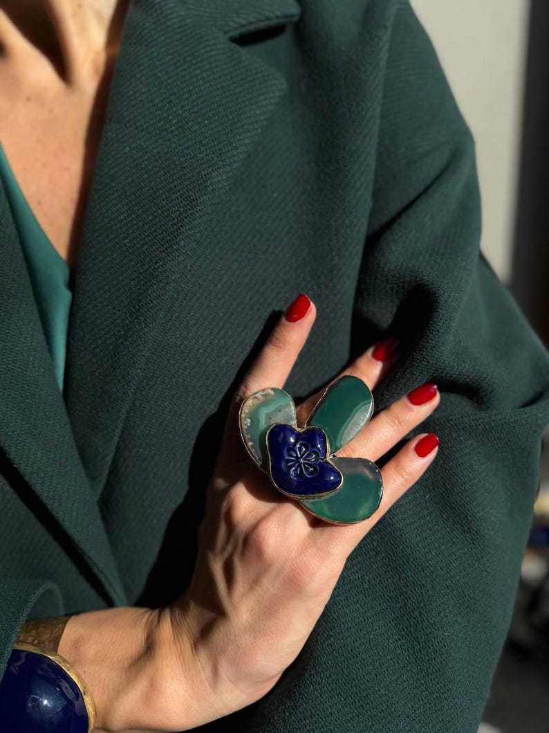Handgemaakte agaat-statementring, kristalvormige sieraden, vintage ring ...