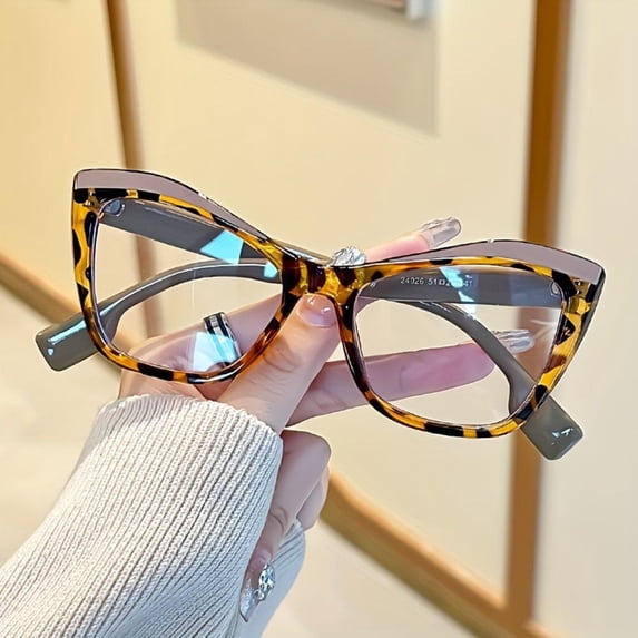 Cat Eye Anti Blue Light Glasses Women Men Color Blocking Large Frame ...
