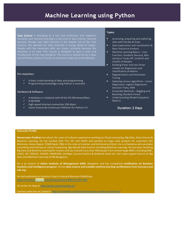 Institute - 📢 Certificate Course on Machine Learning with Python ...