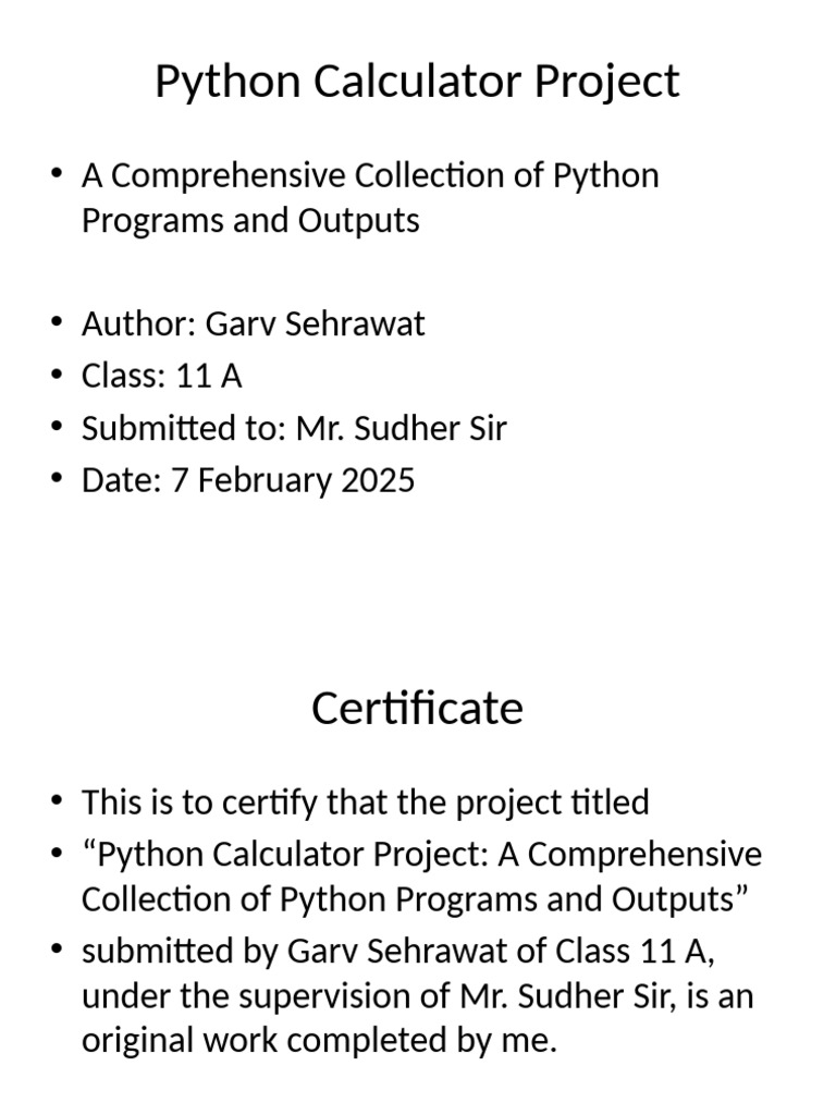 Based on this image's title: “Python Calculator Project Overview | PDF | Multiplication | Python ...”