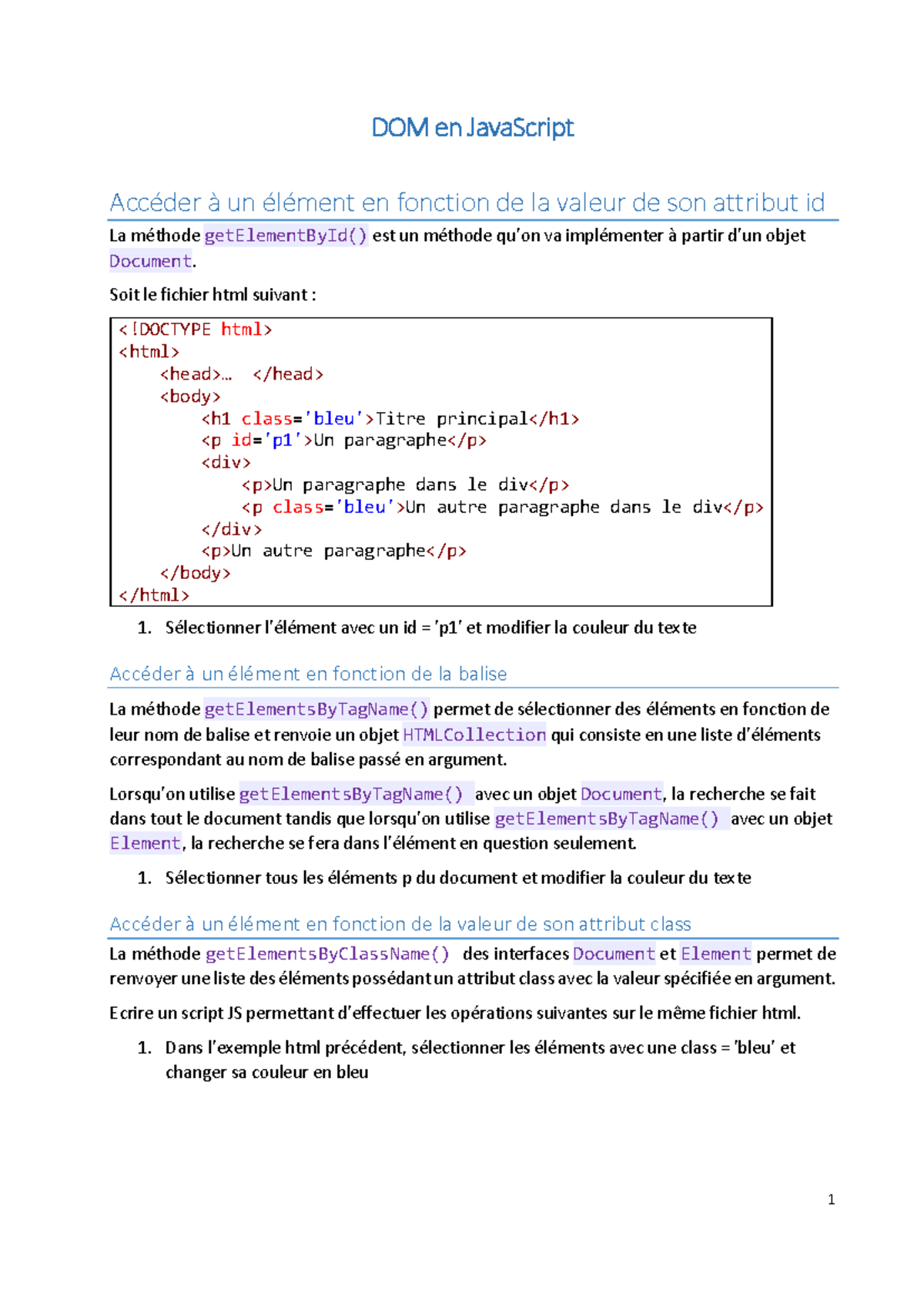 WEB2 TP 3 DOM - Accéder et Modifier Éléments en JavaScript - Studocu