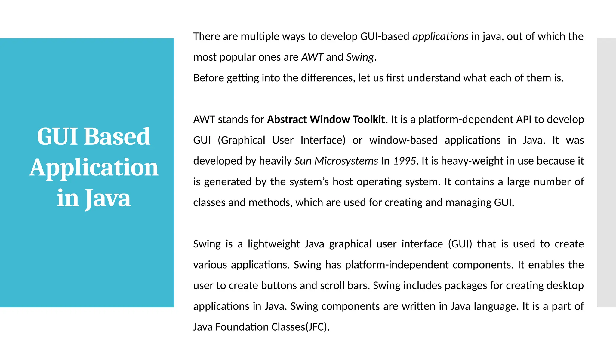 JAVA SWING:Swing is a Java Foundation Classes [JFC] library and an ...