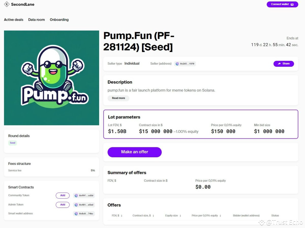 🚨 JUST IN: SecondLane lists 1% stake in Pump․fun for $15M, | Trust Echo ...